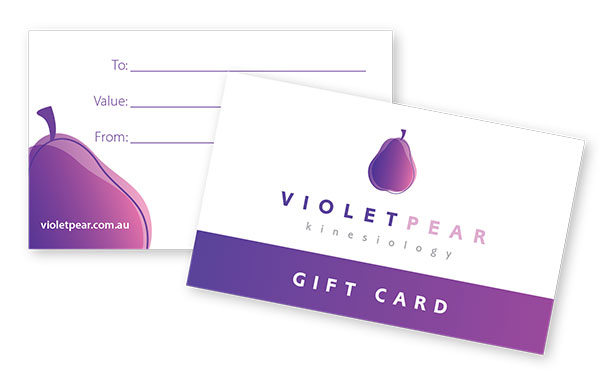 Gift Cards are now available for that perfect gift for a loved one or yourself. They are also available in electronic format which can be e-mailed and printed at home and are valid for 6 months from the date of purchase. Please contact Violet Pear Kinesiology to purchase your Gift Cards.